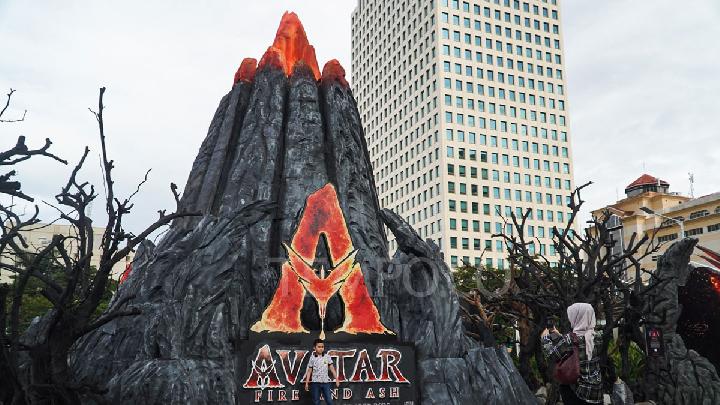 Visitors pose in front of the three-dimensional Pandora World Installation "Avatar: Fire and Ash" at Senayan City, Jakarta, December 17, 2025. Tempo/Martin Yogi Pardamean