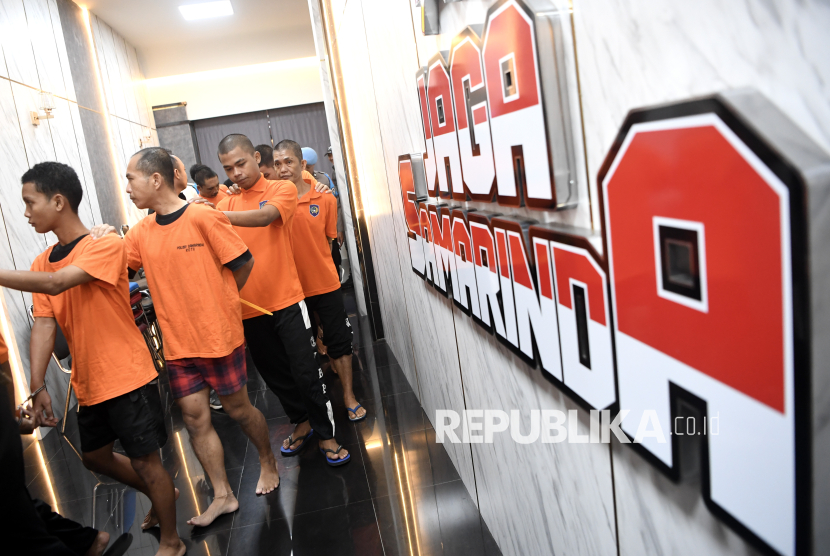 REPUBLIKA.CO.ID, SAMARINDA -- Sejumlah tersangka berjalan keluar ruangan seusai mengikuti ungkap kasus di Mapolresta Samarinda, Kalimantan Timur, Rabu (29/10/2025).
