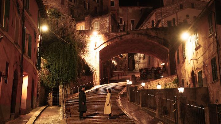 The quiet city rhythm of Perugia, in Umbria, Italy, complements the introspective flow of the drama with its historical city center, sloping streets, and stone buildings. Perugia is also located atop a hill and is known for its Etruscan and medieval roots.