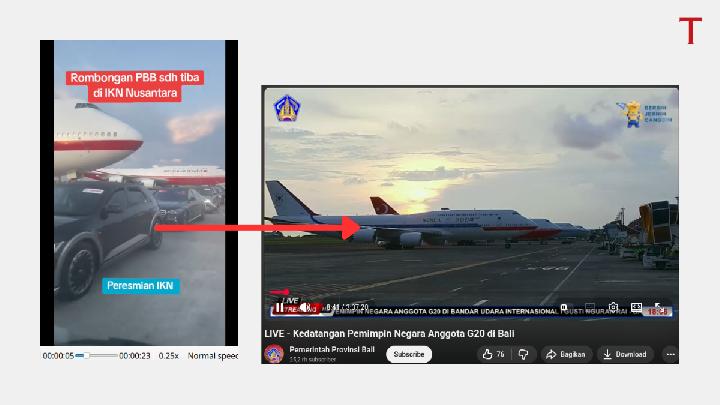 The five second of the video shows a row of South Korean and Turkish aircraft transporting officials to the G20 Summit on November 15-16, 2022. The Bali Provincial Government's YouTube channel also documented these arrivals, including the specific South Korean and Turkish planes, confirming that the recording took place in Bali rather than the IKN airport.