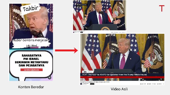 Tempo verified the content through reverse image search, AI detection tools, and reports from credible media outlets. The result showed that the audio in the video was generated using artificial intelligence (AI). In fact, the original video captured Trump attending a bill-signing ceremony on June 12, 2025.