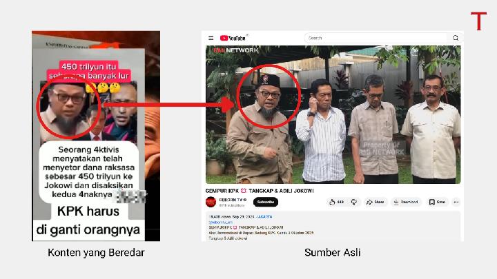 The circulating clip actually originates from a video titled "Gempur KPK, Tangkap & Judi Jokowi" (Attack KPK, Arrest & Gamble Jokowi) that aired on Reborn TV on September 29, 2025. The full video is 15 minutes and 19 seconds long. It calls on the public to demonstrate in front of the KPK building on October 2, 2025.