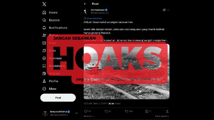 Based on Tempo's investigation, the photo of a devastated Israeli city following an Iranian missile strike is false.