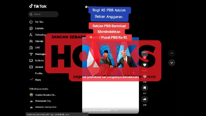TEMPO.CO, Jakarta - A piece of content claiming that the United Nations will move its headquarters to Indonesia was shared by social media accounts on TikTok [archive] and Facebook on January 10, 2026.