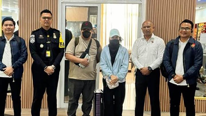 Andi Hakim Febriansyah, bersama istrinya Camelia Rosa, 43 tahun, ditangkap petugas Kantor Imigrasi Medan, Senin, 30 Maret 2026 saat baru mendarat di Bandara Kualanamu, Kabupaten Deliserdang, Sumatera Utara. Tim Passenger Analysis Unit mendeteksi keduanya masuk daftar pencegahan yang diajukan Direktorat Reserse Kriminal Khusus Polda Sumut.