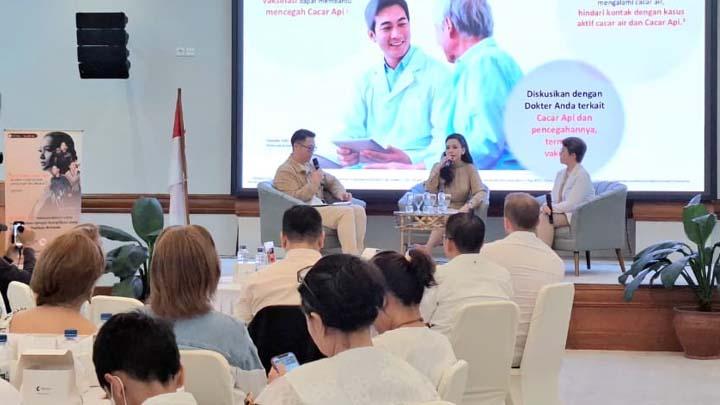 Healthy Talk: Waspada Cacar Api di RS Siloam Lippo Village berkolaborasi dengan GSK Indonesia pada 17 Januari 2026. Dari kiri ke kanan: dr. Johan Wijoyo dari GSK Indonesia, Maia Estianti, dan dr. Sandra dari RS Siloam. Foto: CANTIKA/Tsabita Sirly Kamaliya
