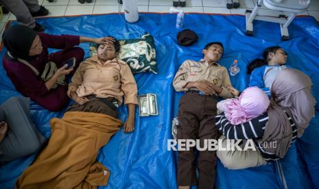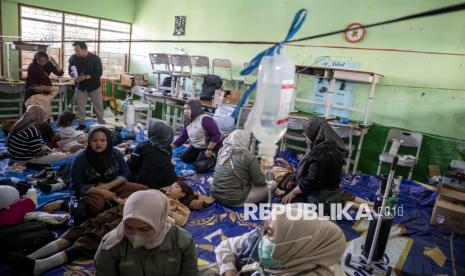 Siswa yang diduga keracunan hidangan makan bergizi gratis (MBG) menjalani perawatan medis di ruang kelas SMPN 1 Cisarua, Cisarua, Kabupaten Bandung Barat, Jawa Barat, Selasa (14/10/2025). Berdasarkan keterangan pihak sekolah, sebanyak 54 siswa mengalami keracunan yang diduga akibat menyantap hidangan makan bergizi gratis pada Selasa (14/10) pagi. (FOTO : ANTARA FOTO/Abdan Syakura)