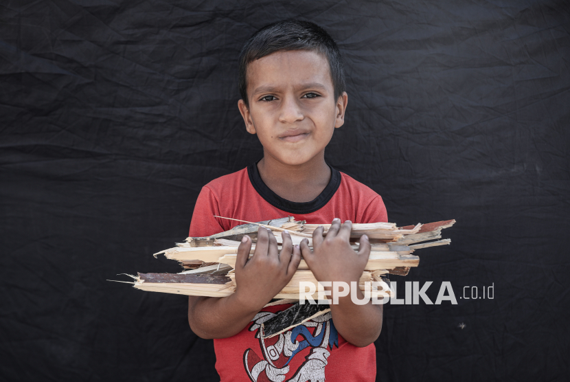 Potret seorang anak Palestina membawa kayu bakar di Kamp Pengungsi Bureij, Gaza, Ahad (19/10/2025). Setelah lebih dari dua tahun perang dan kehancuran, anak-anak Palestina di Gaza menghabiskan hari-hari mereka dengan menunggu dalam antrean panjang untuk mendapatkan bantuan, mengumpulkan kayu bakar, dan membantu keluarga mereka untuk bertahan hidup. (FOTO : Moiz Salhi/Anadolu via Reuters)