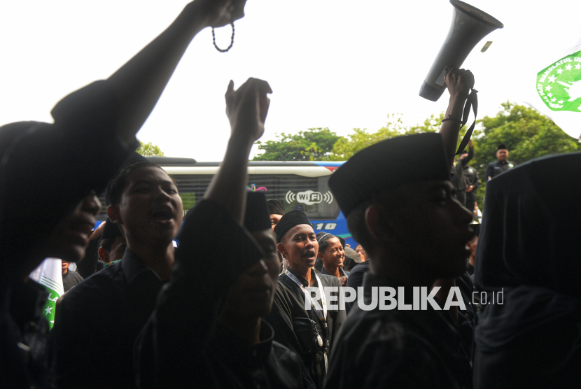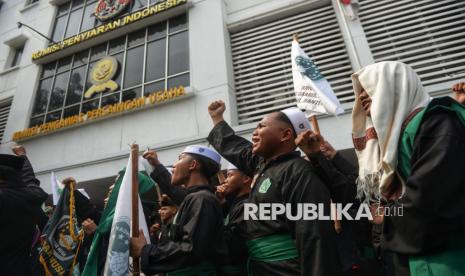 Puluhan Santri Gelar Aksi Damai Bela Kiai dan Pesantren di Kantor KPI Jakarta