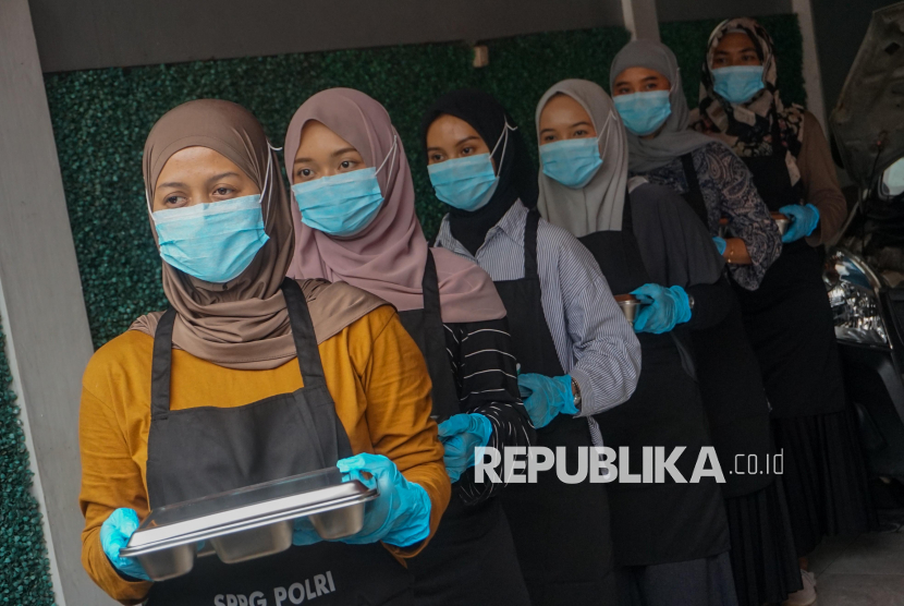Petugas dapur makan bergizi gratis (MBG) menunjukkan prosedur standar penggunanan pakaian di Satuan Pelayanan Pemenuhan Gizi (SPPG) Polres Batang di Kabupaten Batang, Jawa Tengah, Sabtu (1/11/2025). Polres Batang bersama Badan Gizi Nasional mempersiapkan SPPG itu yang rencana akan diresmikan oleh Presiden secara serentak dengan polres dari seluruh Indonesia pada 6 November mendatang untuk mendukung program Makan Bergizi Gratis yang nantinya akan melayani sebanyak 13 sekolah dengan 2.882 penerima manfaat di Kabupaten Batang dengan menerapkan standar gizi makanan yang telah ditentukan yang mengangkat menu makanan khas daerah. (FOTO : ANTARA FOTO/Harviyan Perdana Putra)