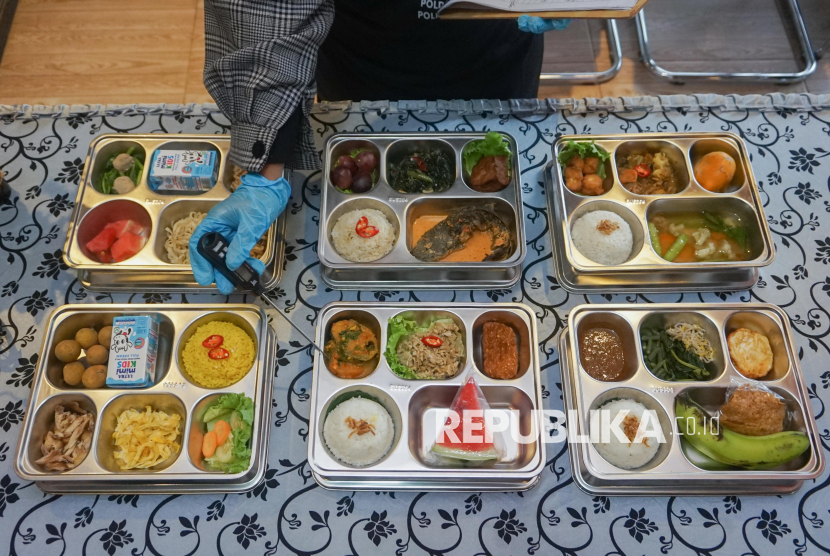 REPUBLIKA.CO.ID, BATANG -- Ahli gizi mengecek suhu makanan menggunakan termometer masak digital saat pemorsian contoh menu makan bergizi gratis (MBG) pada makanan khas nasi megono di Satuan Pelayanan Pemenuhan Gizi (SPPG) Polres Batang di Kabupaten Batang, Jawa Tengah, Sabtu (1/11/2025).