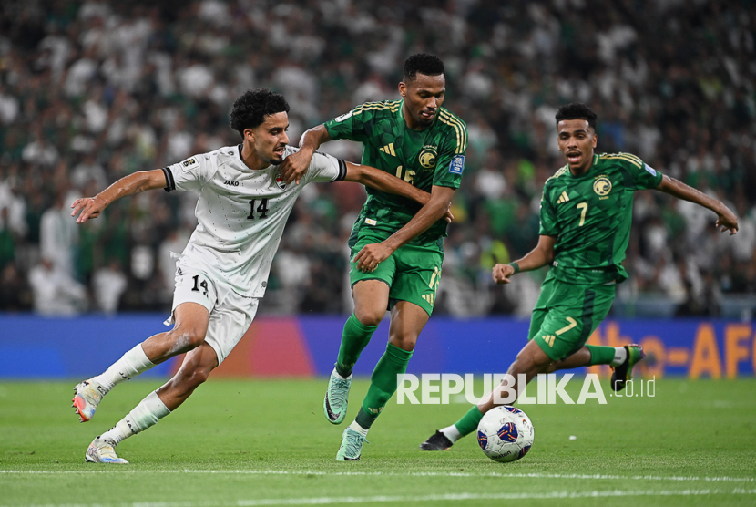 REPUBLIKA.CO.ID, JEDDAH -- Arab Saudi berhadapan dengan Irak saat pertandingan kualifikasi Piala Dunia 2026 putaran keempat Grup B sepak bola Asia di Stadion Alinma Bank di King Abdullah Sports City, Jeddah, Arab Saudi, Rabu (15/10/2025).