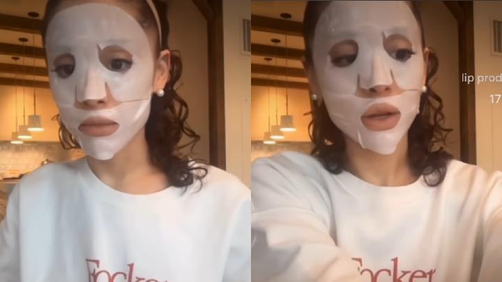 Momen tersebut muncul dalam sebuah video yang diunggah Ariana di Instagram r.e.m.beauty saat mempromosikan brand kosmetiknya. Dalam video tersebut, ia tampak santai di rumah sambil mengenakan sheet mask dan membongkar isi tasnya yang penuh dengan berbagai produk lip gloss. Di balik headband tipis yang dikenakannya, rambut cokelatnya terlihat jatuh dengan tekstur ikal alami sebahu.