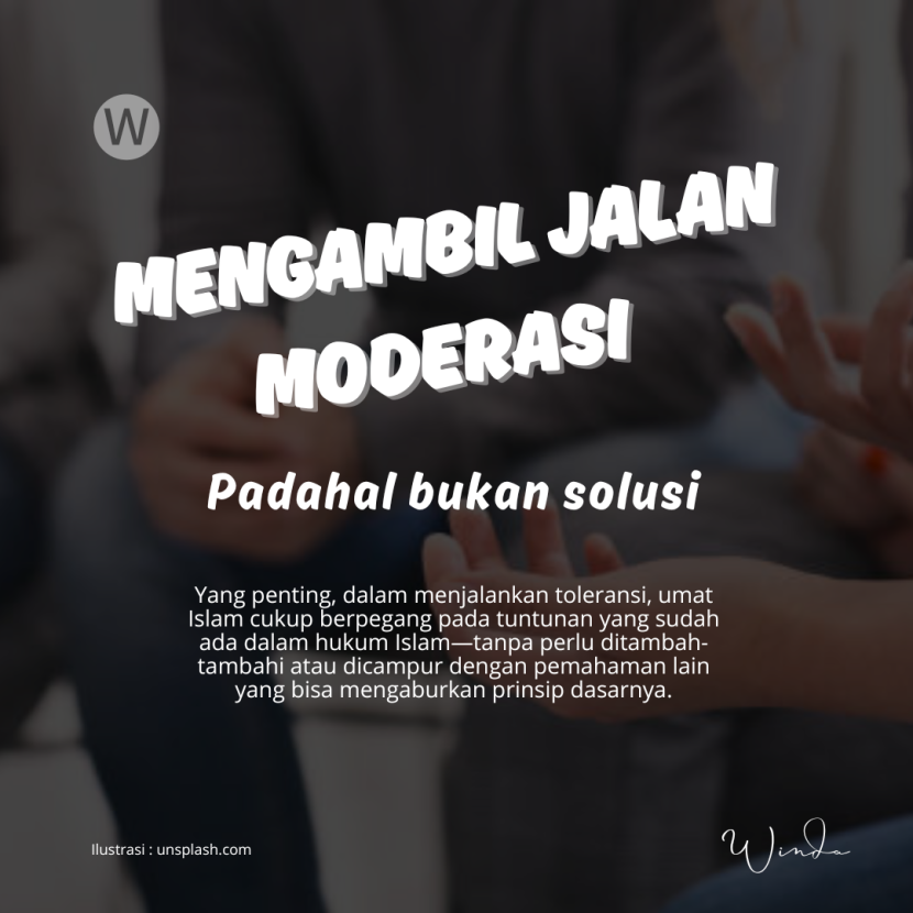 Moderasi beragama digalakkan karena dianggap bisa cegah konflik dan ketidak adilan. Tapi sejak dijalankan, kondisi generasi muda kita malah makin bikin resah—iman makin luntur, pergaulan bebas makin marak, kasus kekerasan, narkoba, judi online, sampai gangguan mental makin banyak. Jadi masalah generasi dan semua persoalan yang ada di negeri ini ataupun diseluruh dunia bukan karena masalah toleransi beragama. Masalah yang muncul di berbagai lapisan masyarakat disebabkn karena persoalan yang kompleks. Mulai dari kemiskinan, pendidikan yang tidak merata , pendidikan yang jauh dari norma agama, korupsi yang menyebabkan kesenjangan, pencaplokan SDA oleh asing ,oligarki, nepotisme, dan...masih banyak masalah lain yang tidak bisa ditulis semuanya disini. Lantas mengapa mengambil jalan moderasi yang justru bukan solusi? Bahkan moderasi beragama ini sangat berbahaya bagi umat Islam.