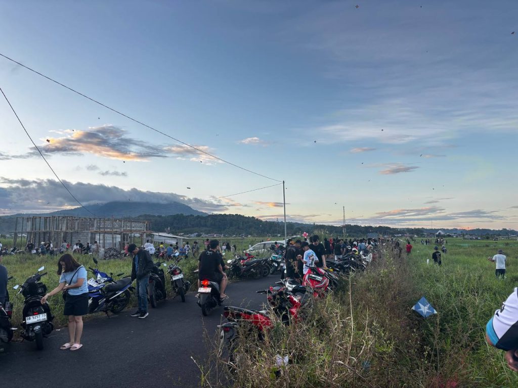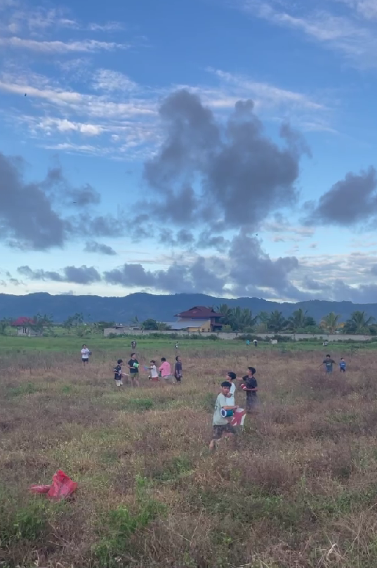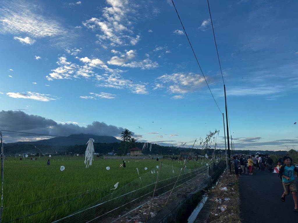 Dimana warga dengan membawa kendaraan motor dan mobil memadati persawahan untuk permainan layang-layang. Warga berkompetisi menerbangkan layang-layang dalam liga layangan. Permainan ini menjadi kegiatan yang sangat menarik untuk dilakukan warga sambil melepas penat setelah sekolah dan bekerja. Angin bertiup membuat layang-layang terbang tinggi. Menjadi kebanggaan bagi warga ketika melihat layang-layang terbang tinggi di angkasa biru.